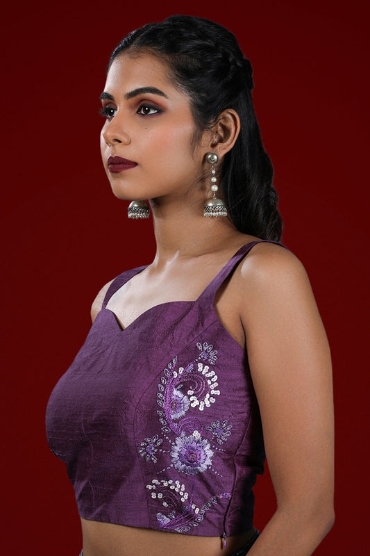 Hand Embroidered Raw Silk Top